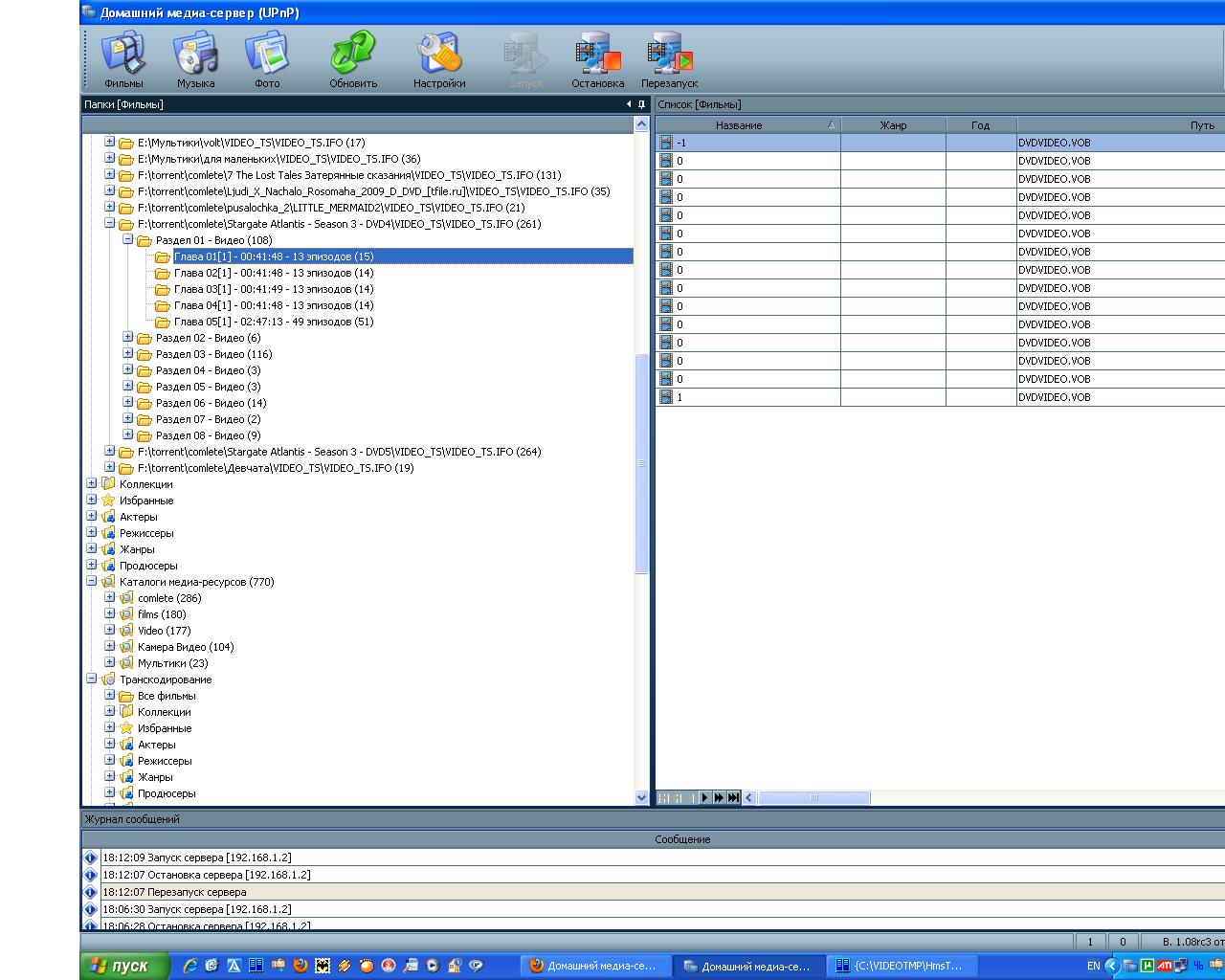0 и -1 связаны с включенным режимом "Всегда использовать имя файла в качестве названия медиа-ресурса", исправлю. На счет серий не с начала - не уверен, вроде идет "предисловие", а потом начальные титры, затем продолжение "предисловия". Создание и проигрывание ts-файла можно проверить на профиле транскодирования "Фильмы (дополнительный)", но необходимо внести изменения